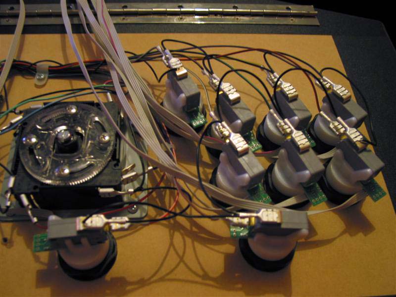 As you can see I've removed all the main player buttons in one go so the wrench can fit to undo the base of each button. Because this CP was already wired up, I just had the micro switch sit into it's original hole.